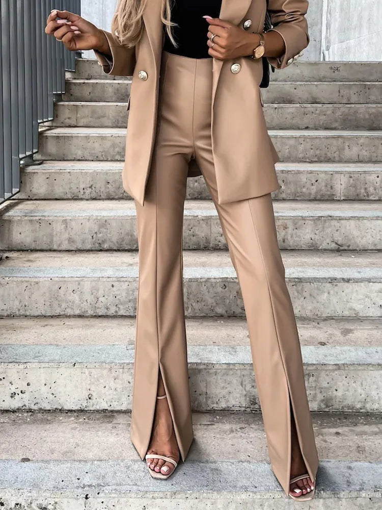 MQTIME - Fashion PU Leather Slim Straight Pants Elegant High Waist Pocket Skinny Pants Temperament Solid Color Women's Commute Trousers