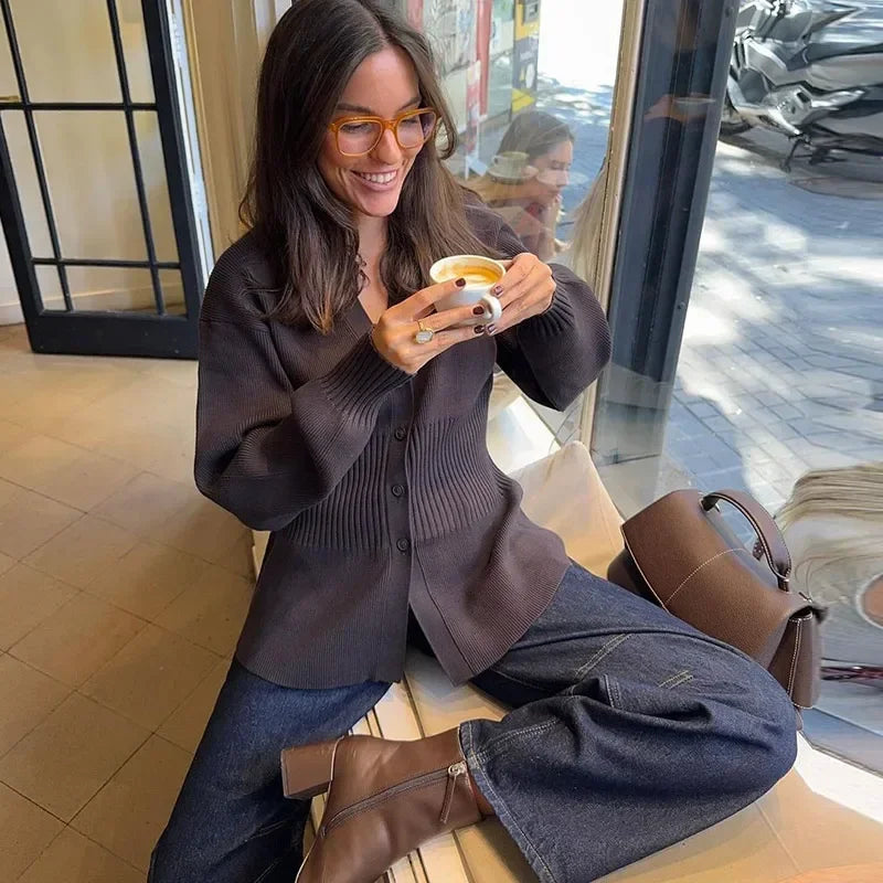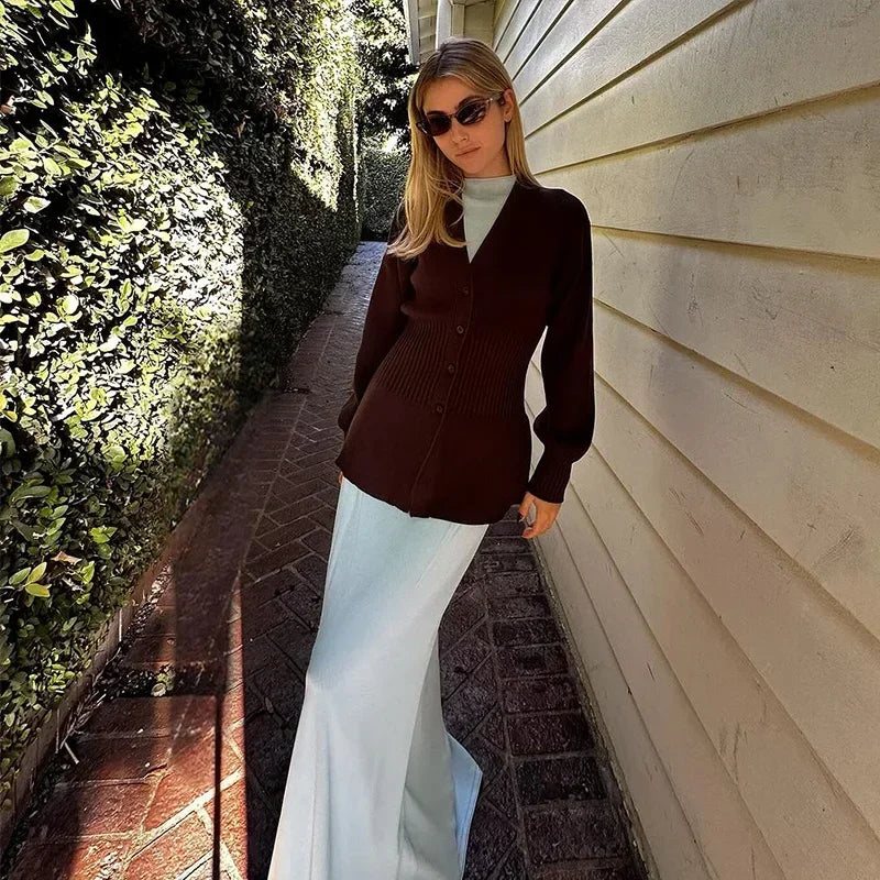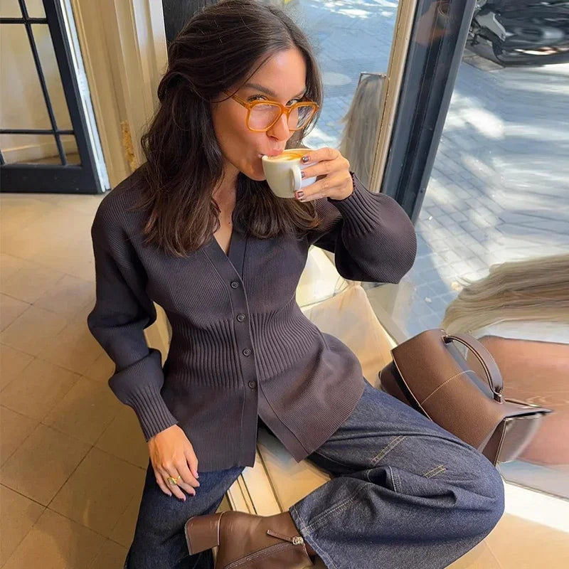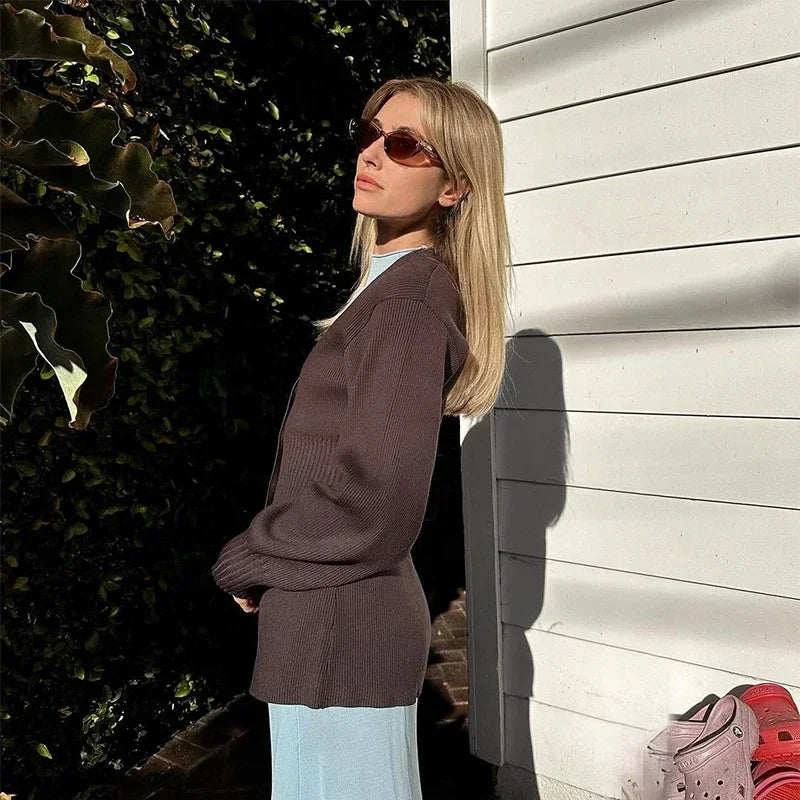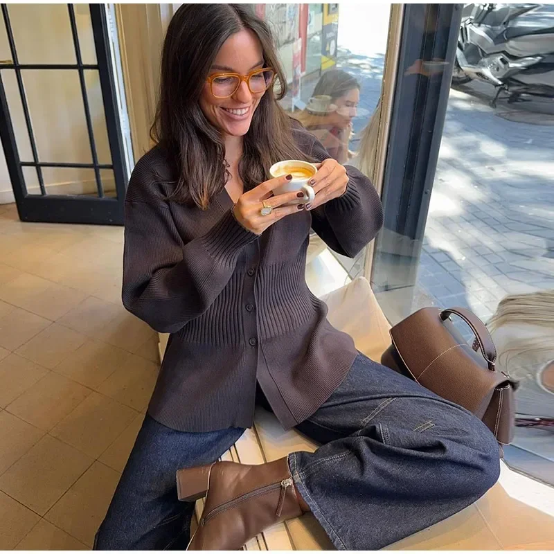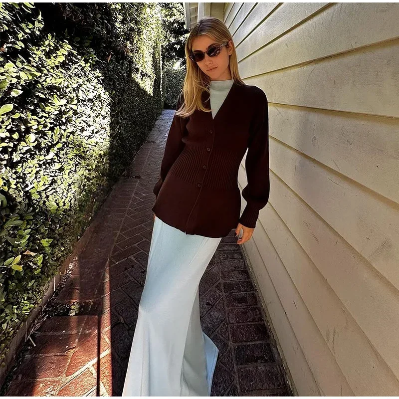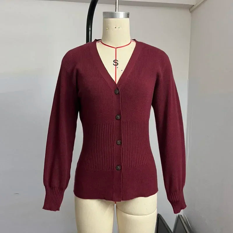 MQTIME - Autumn Knit Women's Cardigan Elegant Single Breasted Long Sleeve V-neck Female Sweater Comfortable Lady Thin Knitwear