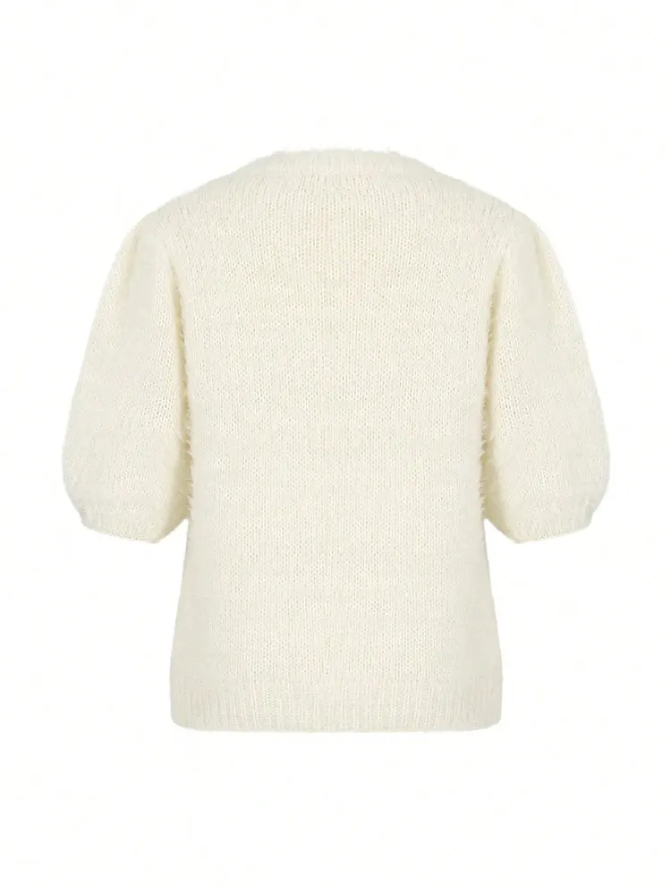 MQTIME  -  New French Round Neck Half-Sleeve Pullover Winter Soft Apricot Warm Women's Sweater Tops Kpop Elegant Party Solid Loose Blouse