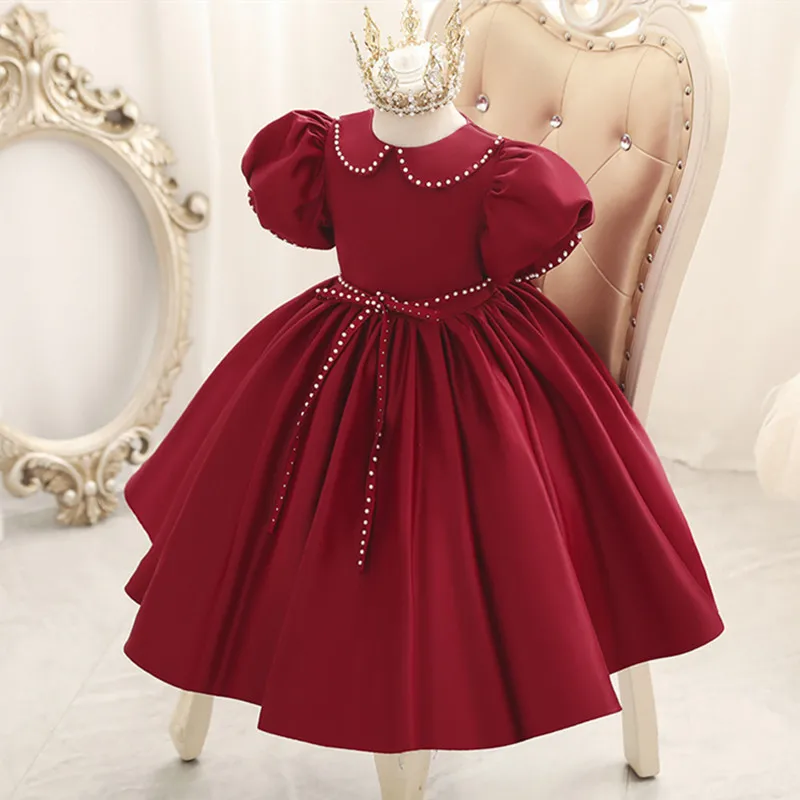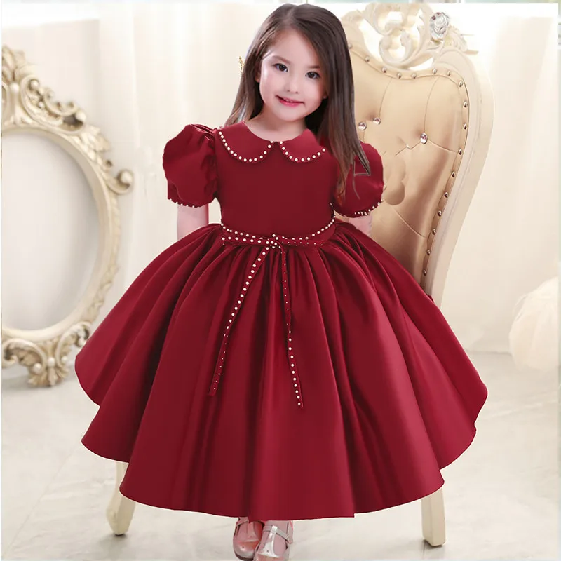 Mqtime Girl Dress Princess Paste Drill Formal First Communion Children Party Wedding Flower Kids Dress for Girl Birthday Dress