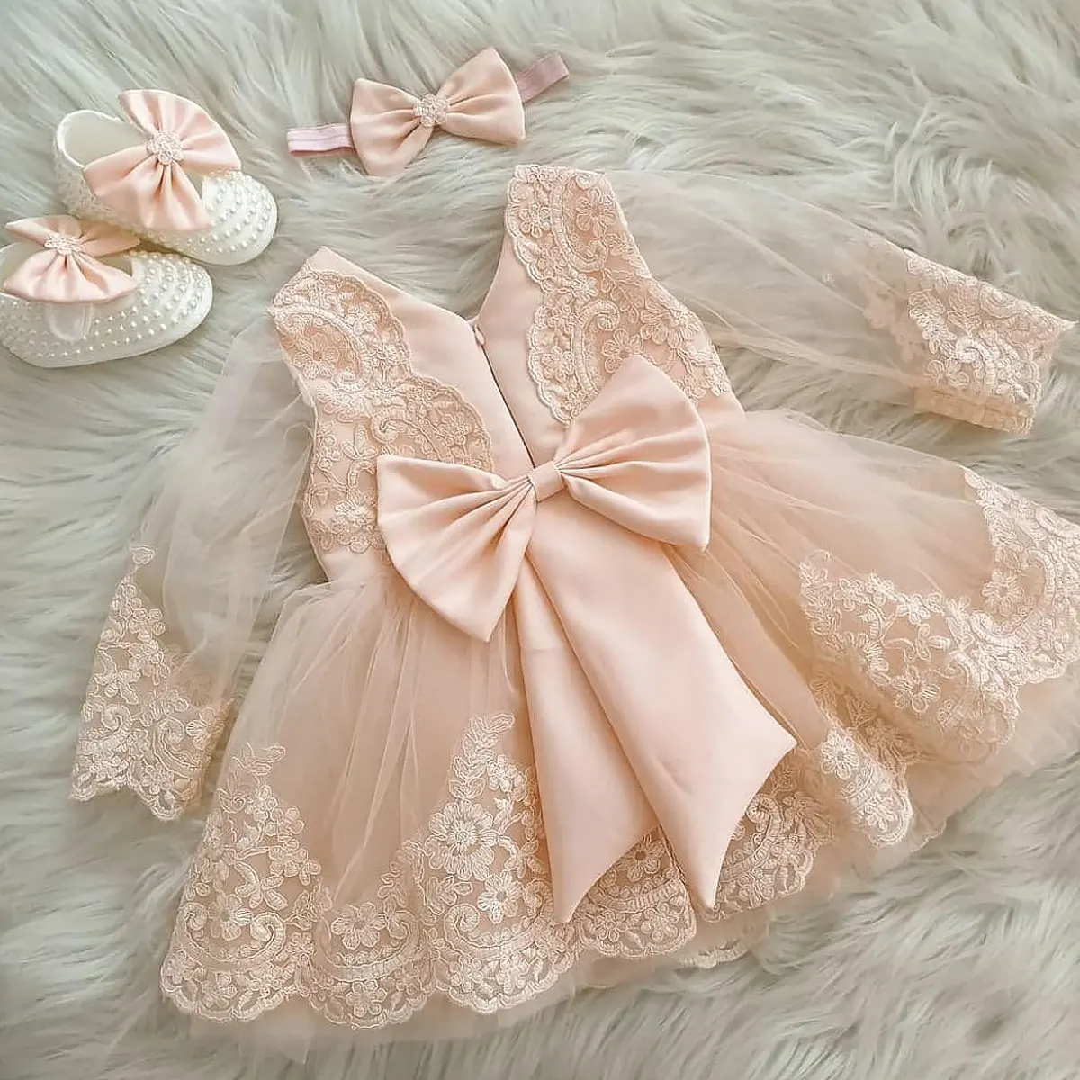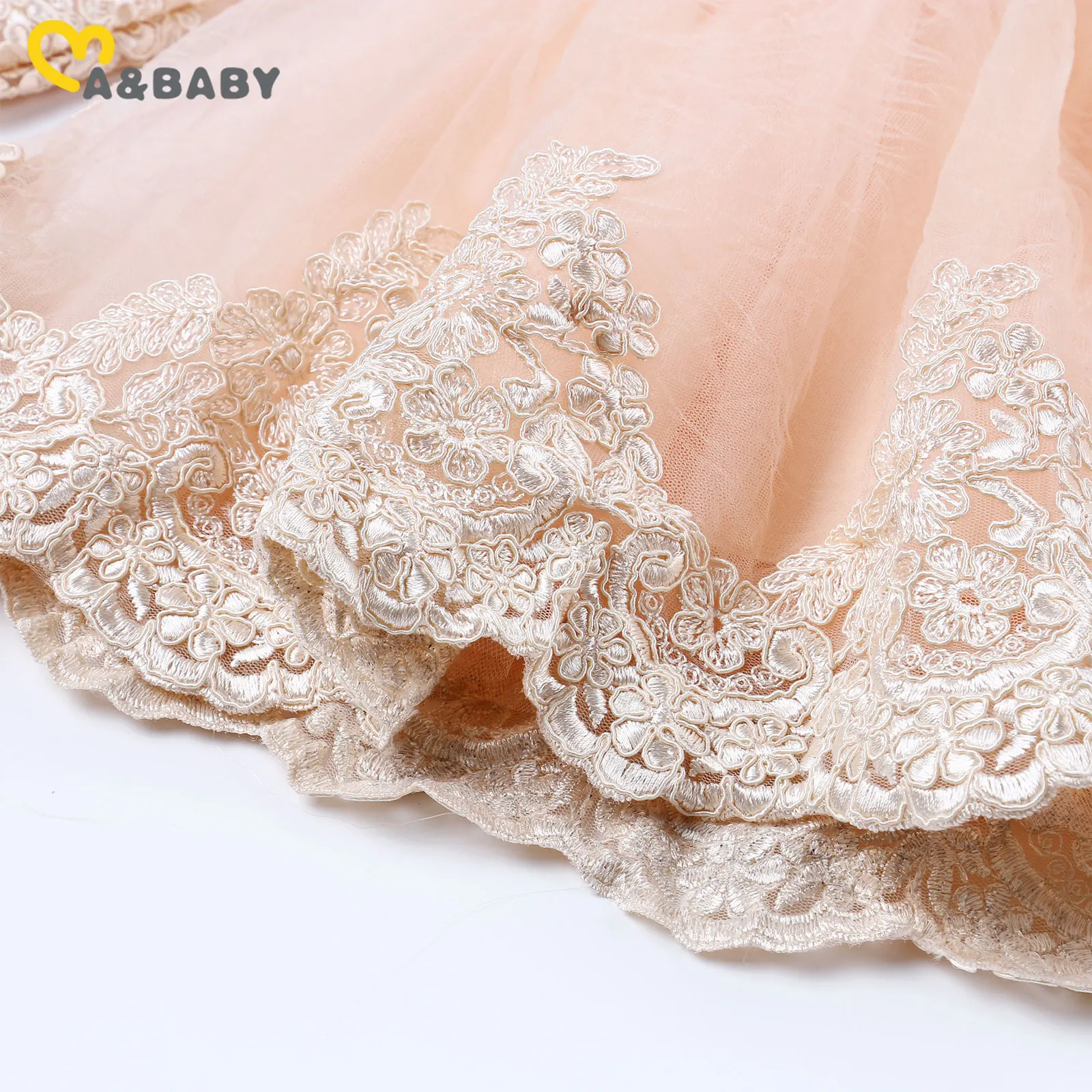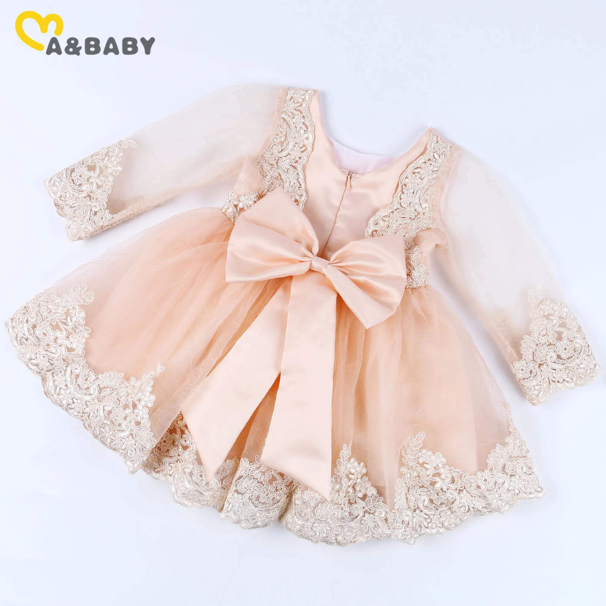 Mqtime Ma&Baby 6M-6Y Princess Toddler Kid Baby Girl Dress Long Sleeve Lace Bow Tutu Dresses For Girls Party Wedding Birthday Costumes