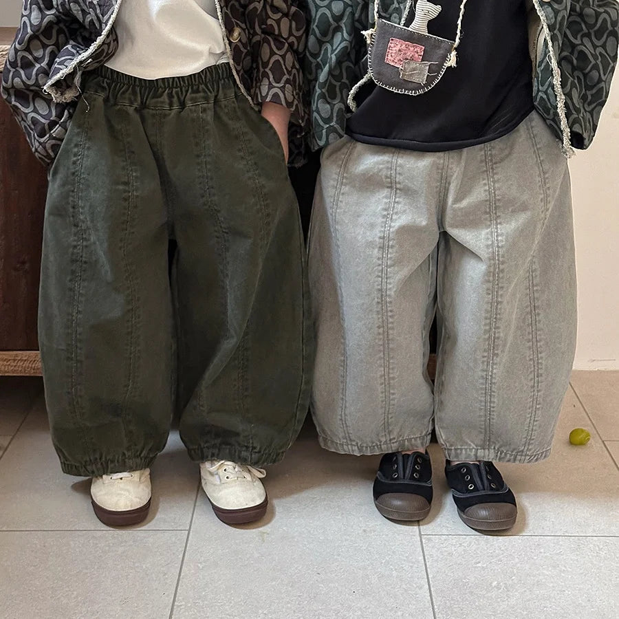 MQTIME - Autumn Kids Carrot Pants 1-7T Vintage Style Solid Boys Splicing Pants Korean Loose Childrens Trousers Girls Baby Wide Leg Pants