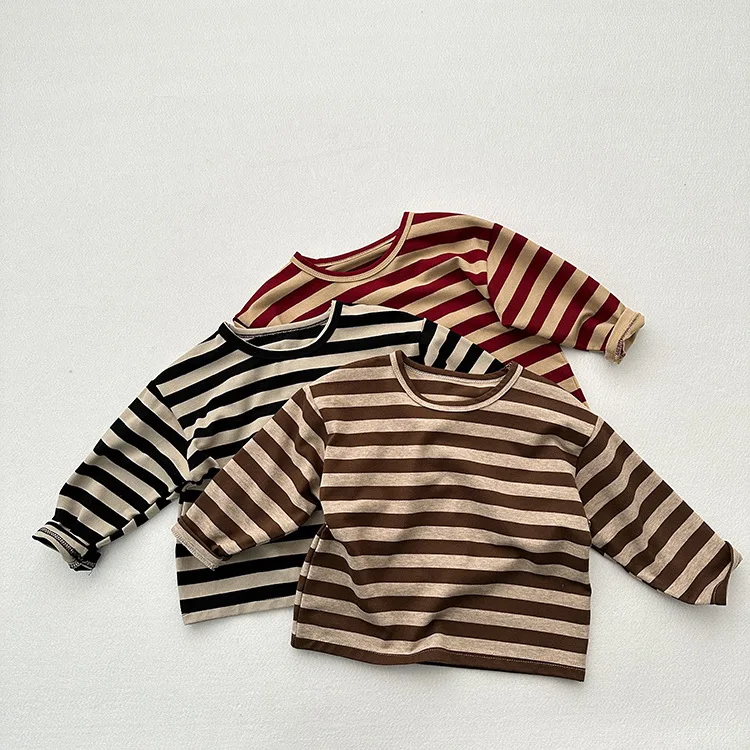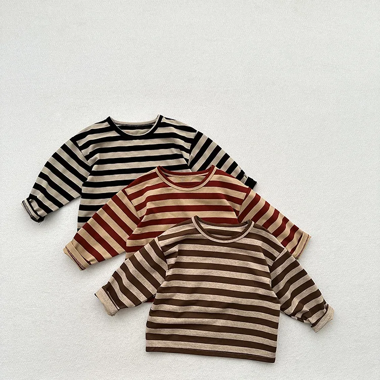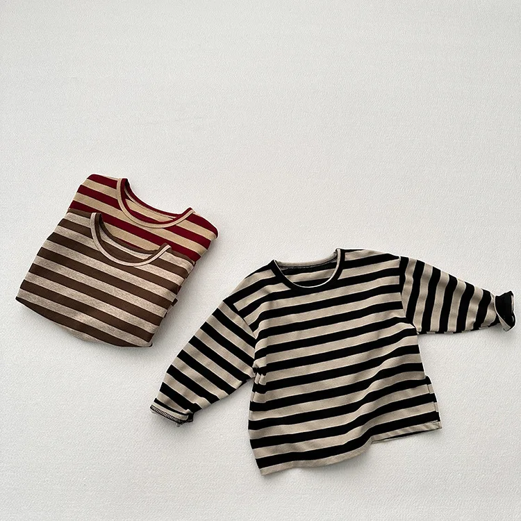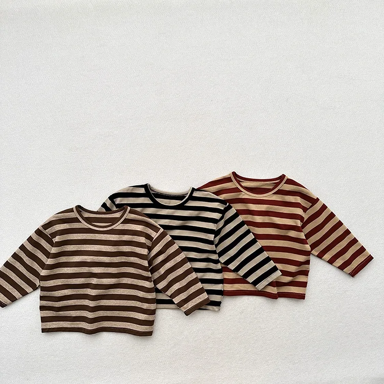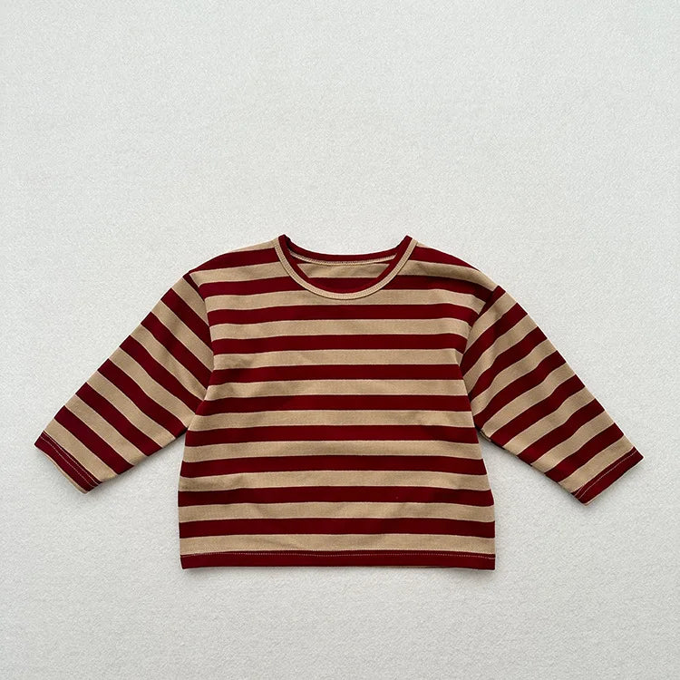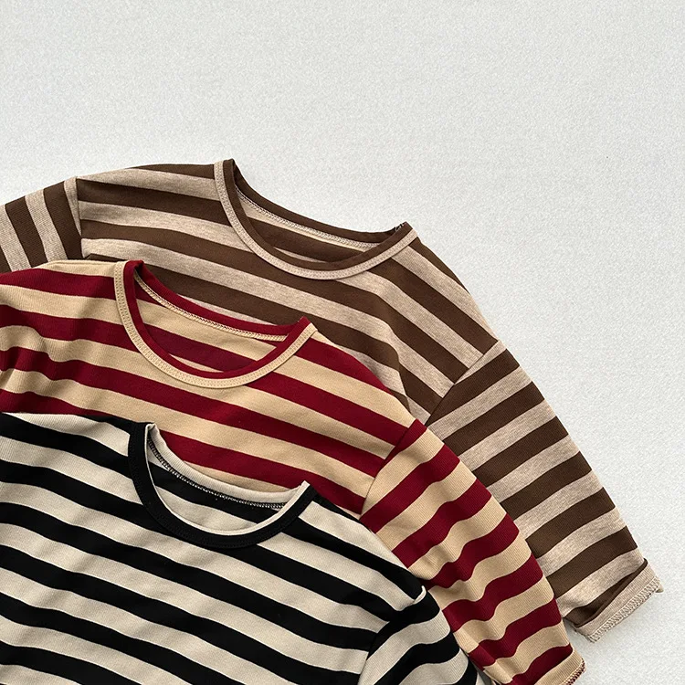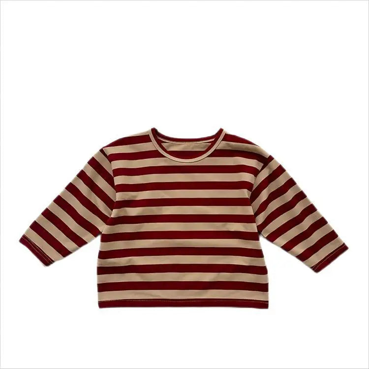 MQTIME - Autumn New Children Long Sleeve Striped T Shirts Cotton Boys Casual Tee Kids Vintage O-neck Tops Girls Bottoming Shirts
