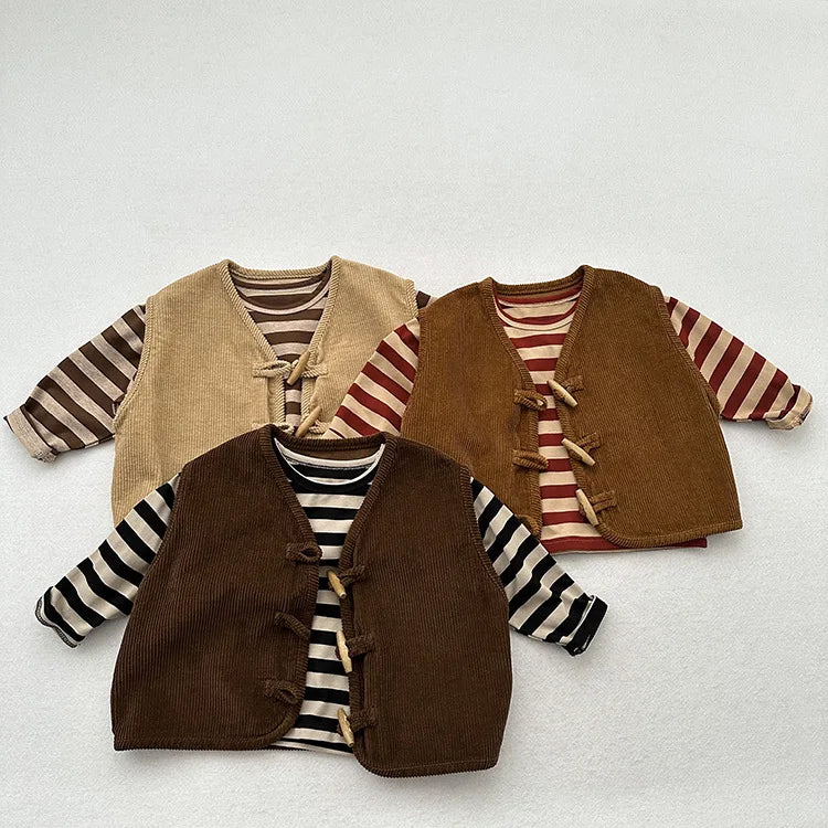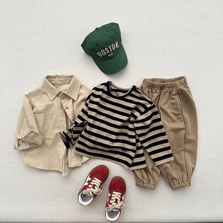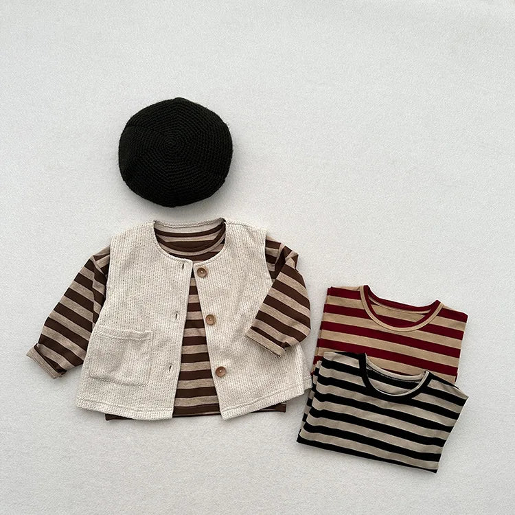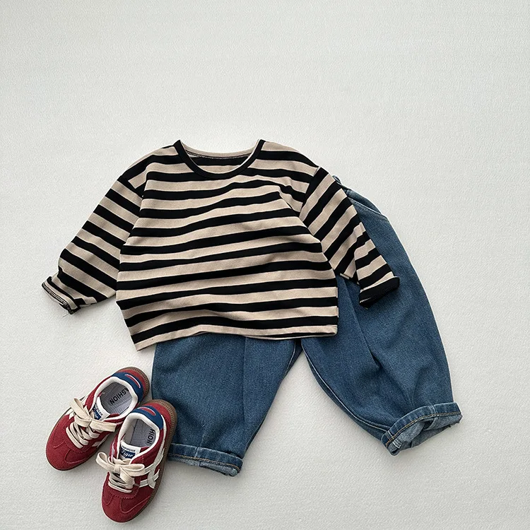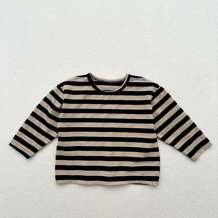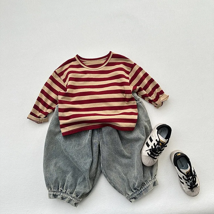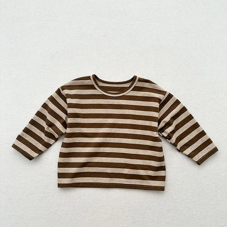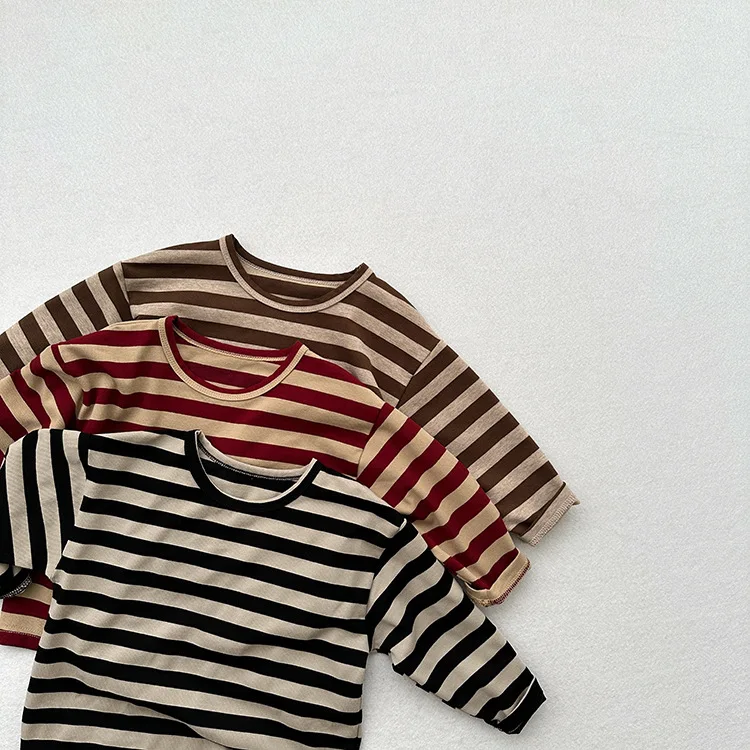 MQTIME - Autumn New Children Long Sleeve Striped T Shirts Cotton Boys Casual Tee Kids Vintage O-neck Tops Girls Bottoming Shirts