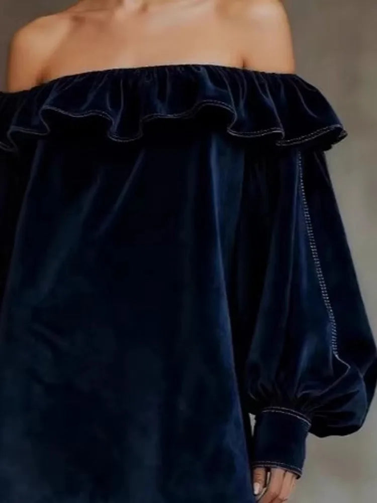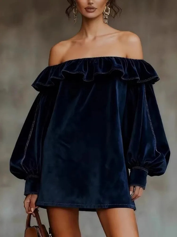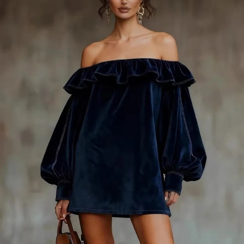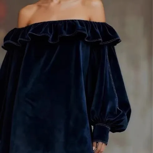 MQTIME - Elegant Off Shoulder Velvet Dress Woman Sexy Elegant Temperament Slim Dress Vintage Long Sleeve Spring Autumn Mini Dress 2026