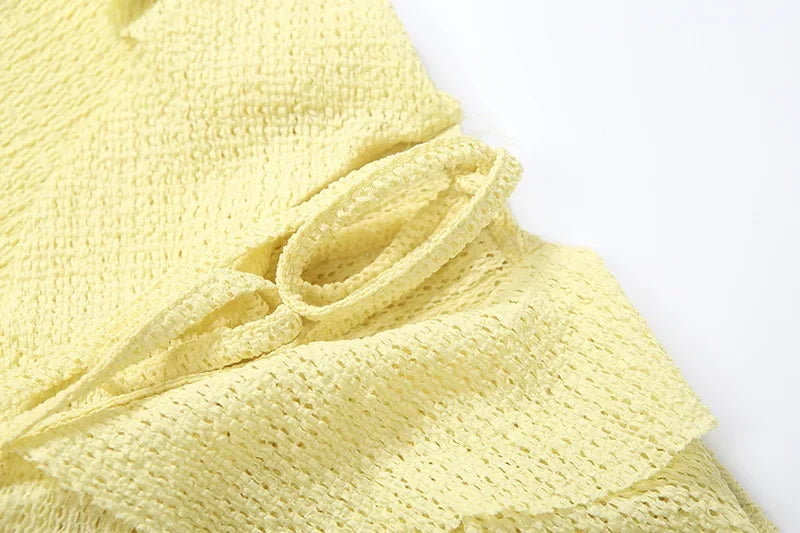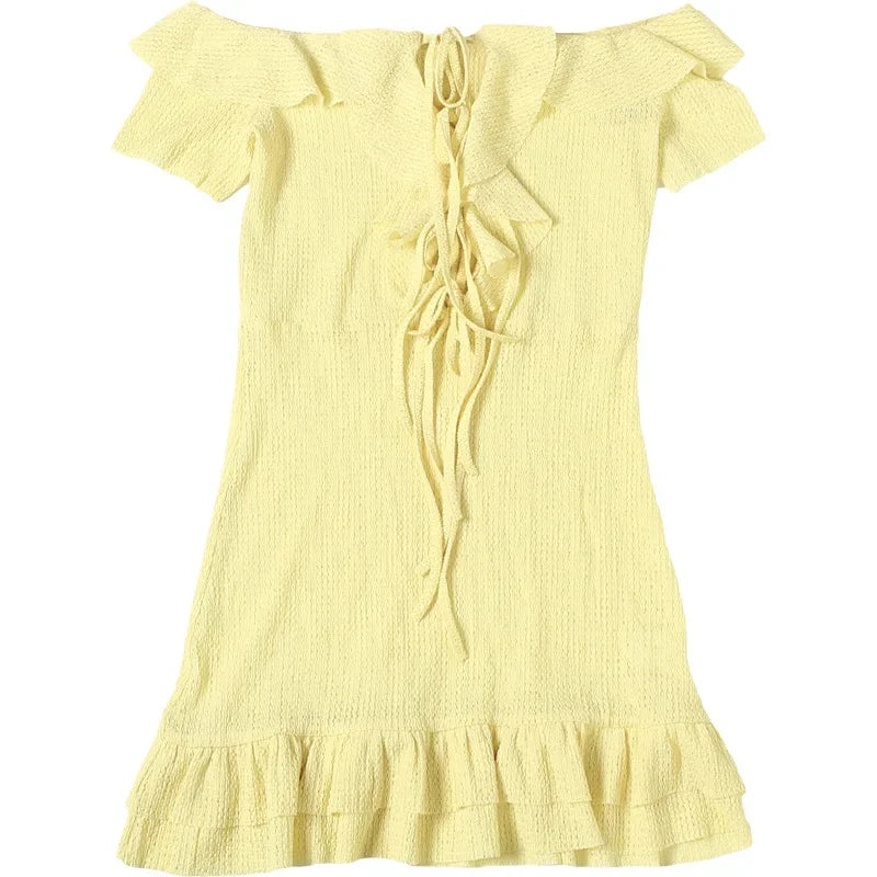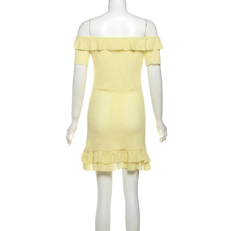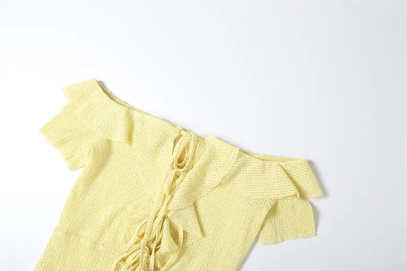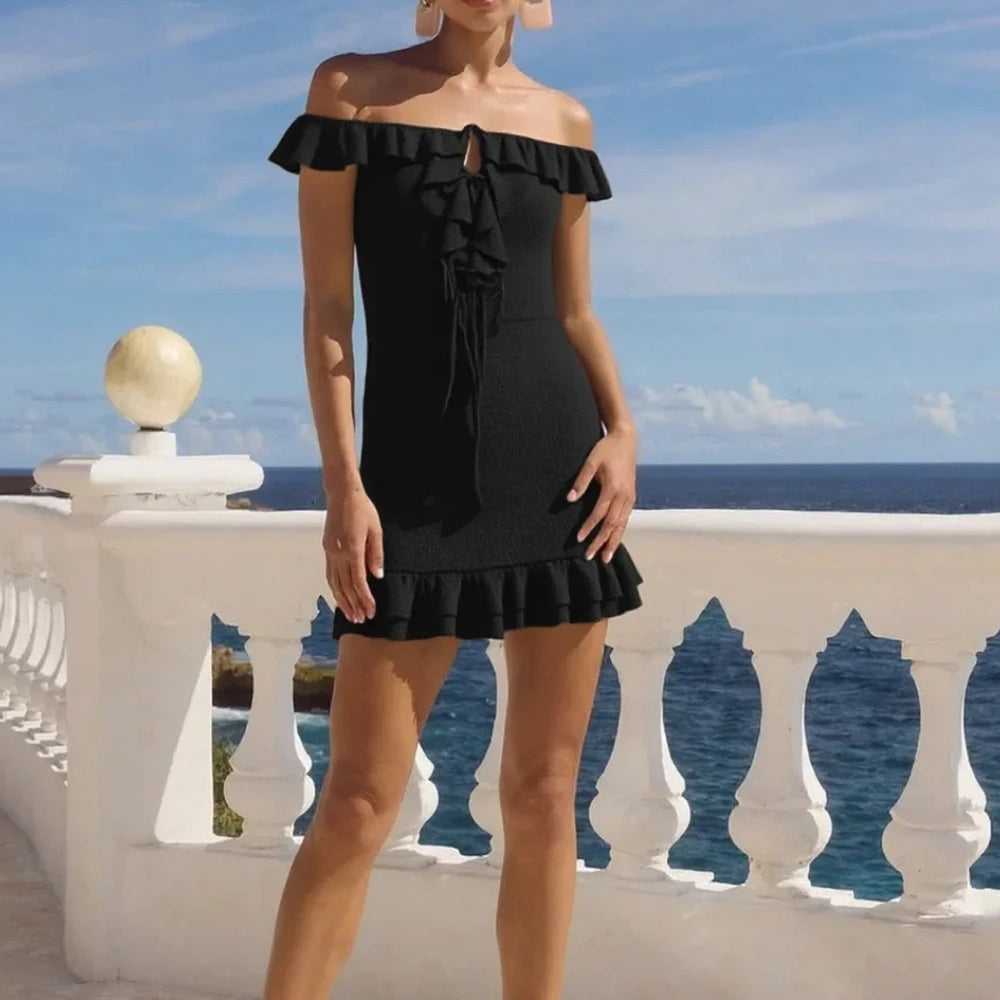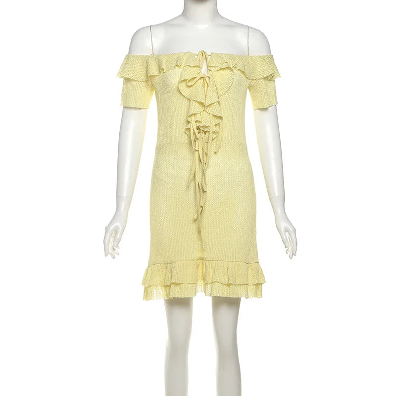 MQTIME - Lace Up Hollow Bodycon Mini Dress Solid Ruffles Women Sexy Slash Neck Off Shoulder Short Sleeve Holiday Outfits Casual Dresses