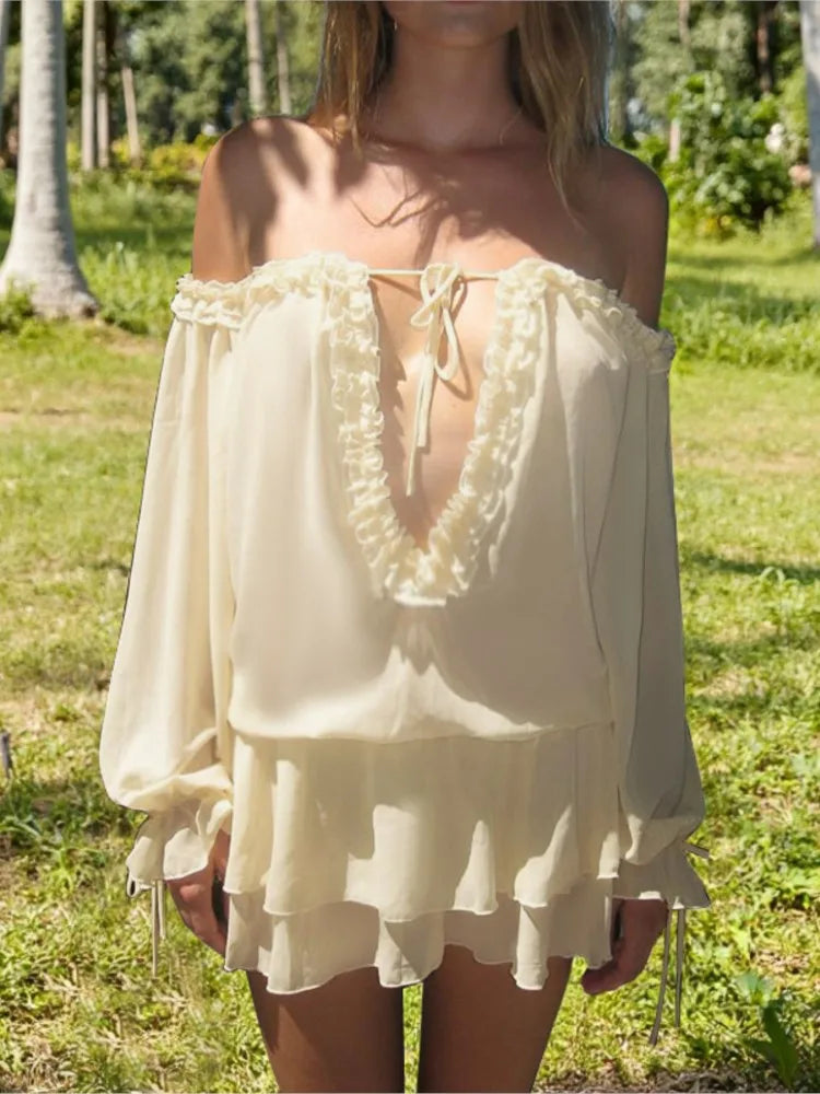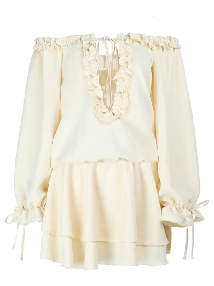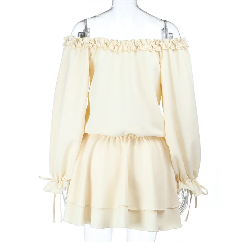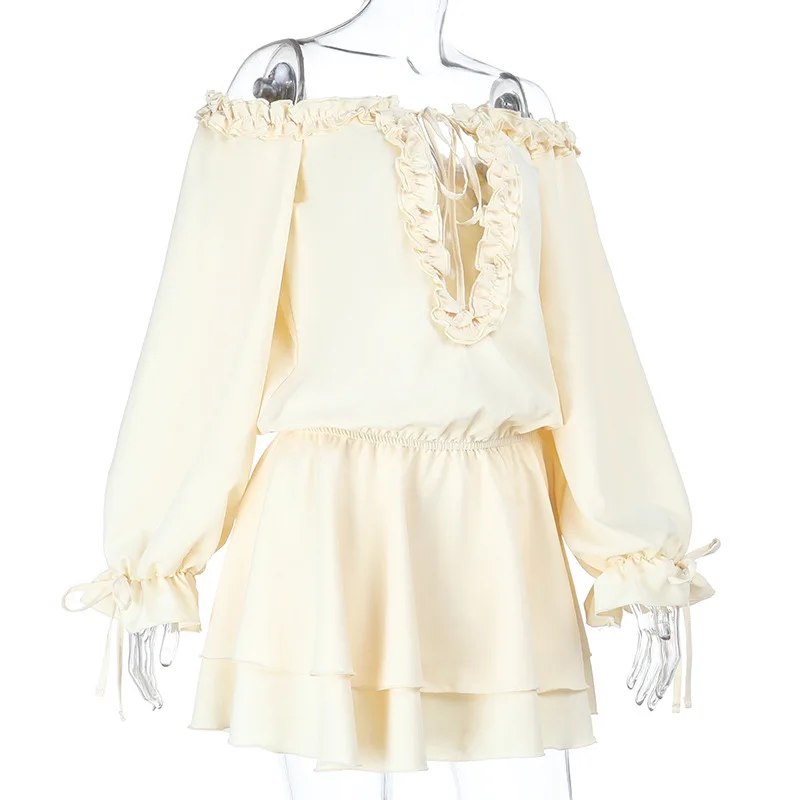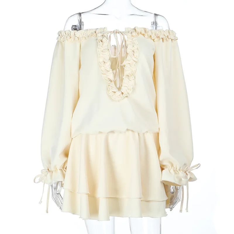 MQTIME - Off Shoulder Ruffles Patchwork Strapless Bodycon Mini Dress Women's Solid Sexy Outfit Party Clubwear Sexy Club Dresses