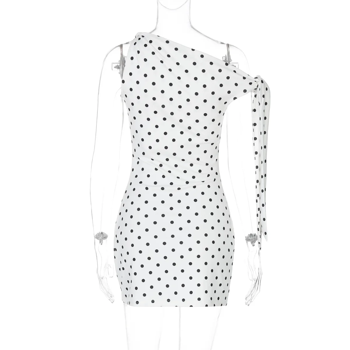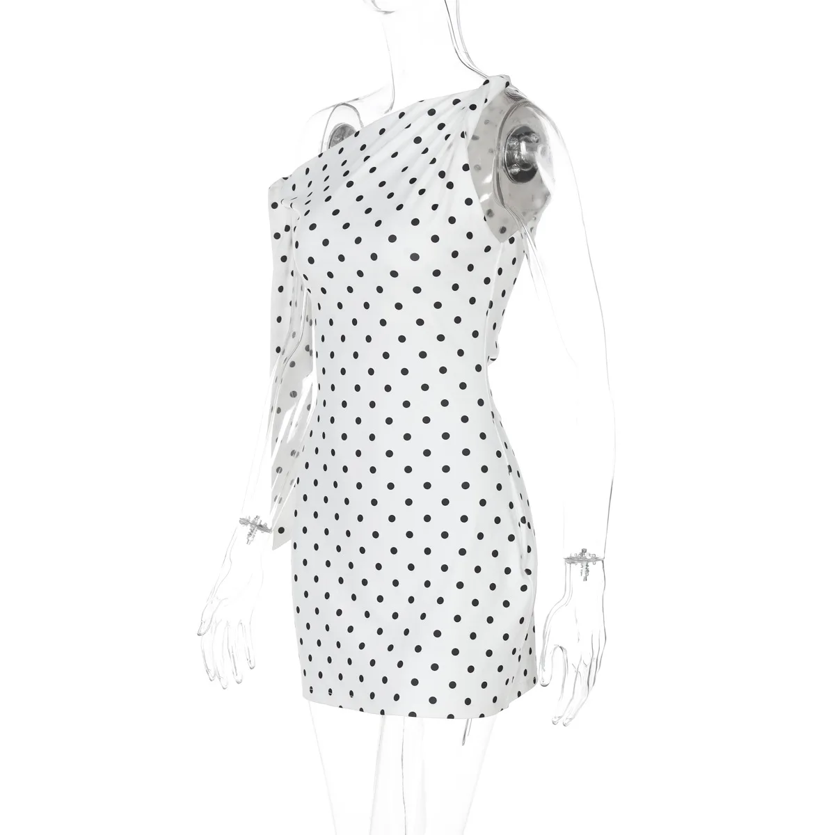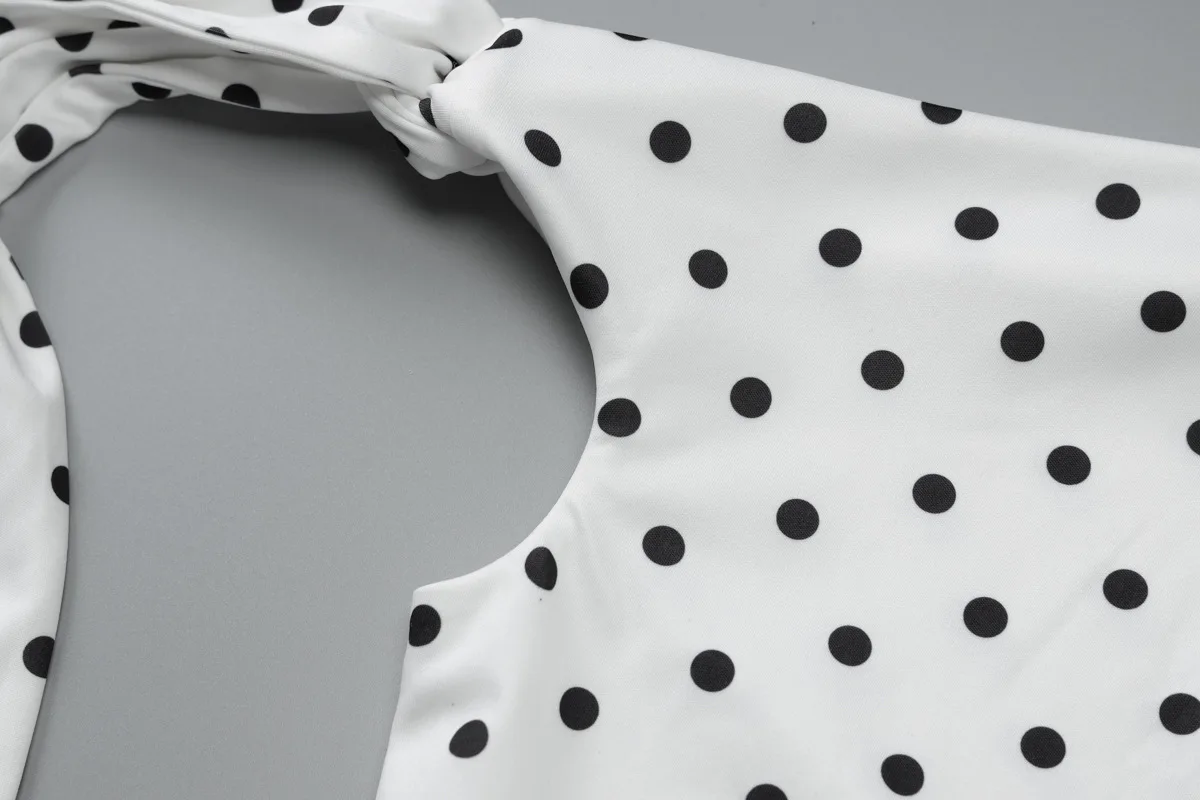 MQTIME - Polka Dot Backless Mini Dress Women Summer Sexy Printed Strapless Lace-up Dress Fashion Sleeveless Vintage Party Dress