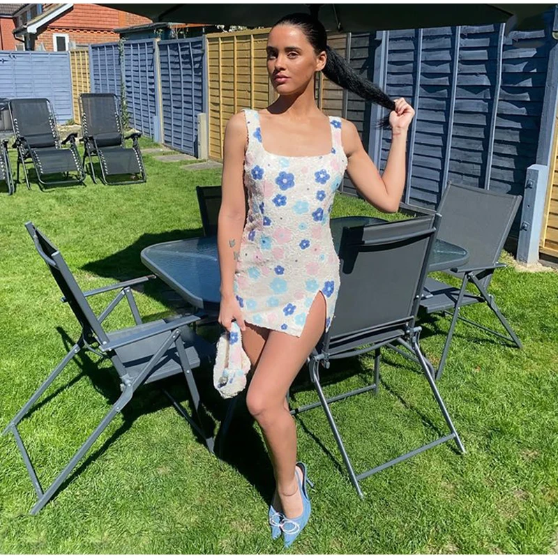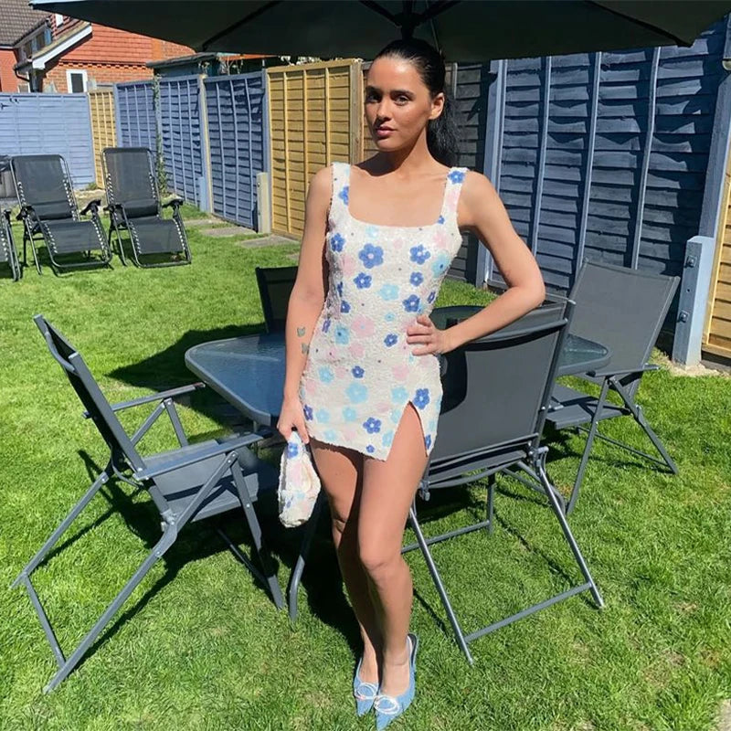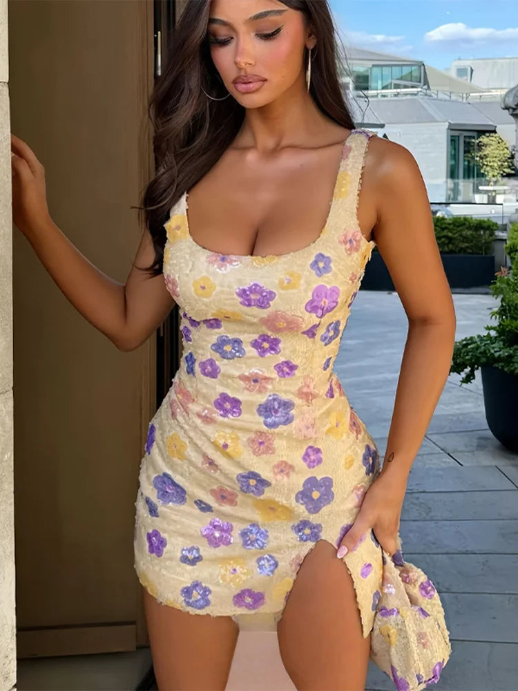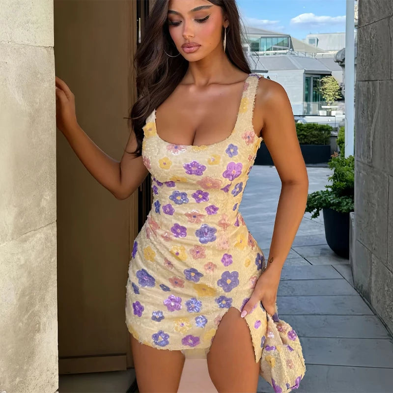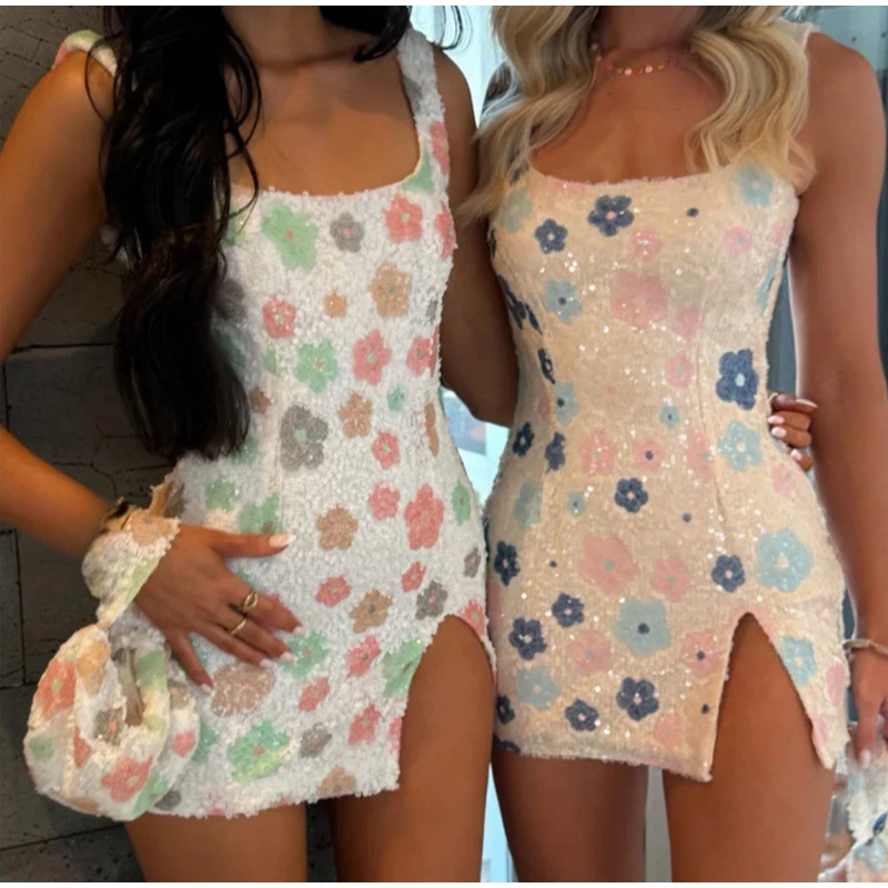 MQTIME - Sex Floral Sequin Nightclub Sexy Party Dress Women Spaghetti Strap Mini 2026 Spring Summer Dress Slim Bodycon Dresses