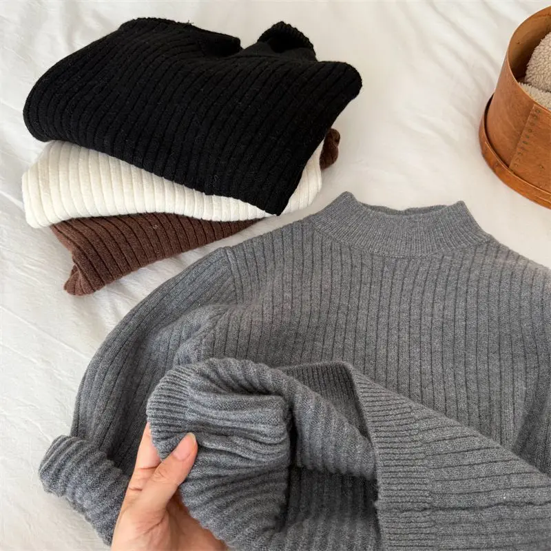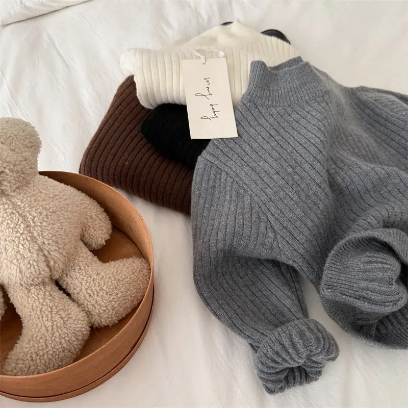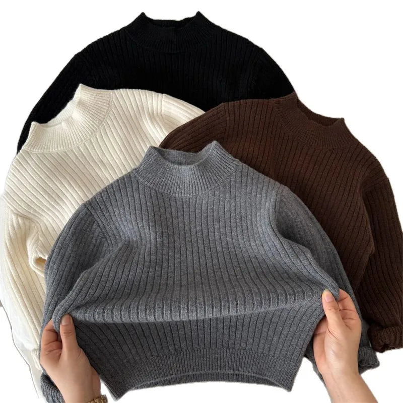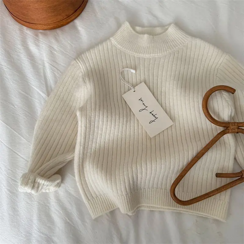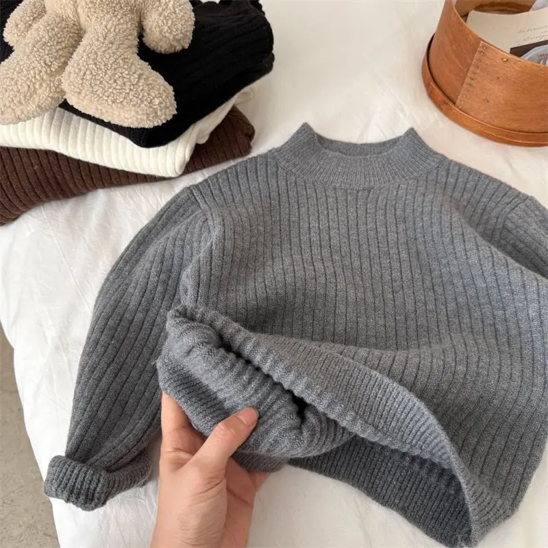 MQTIME - Toddler Kids Boys Sweater Solid Color Thicken Warm Little Girls Knitwear New Winter Round Neck Infant Baby Girl Pullovers