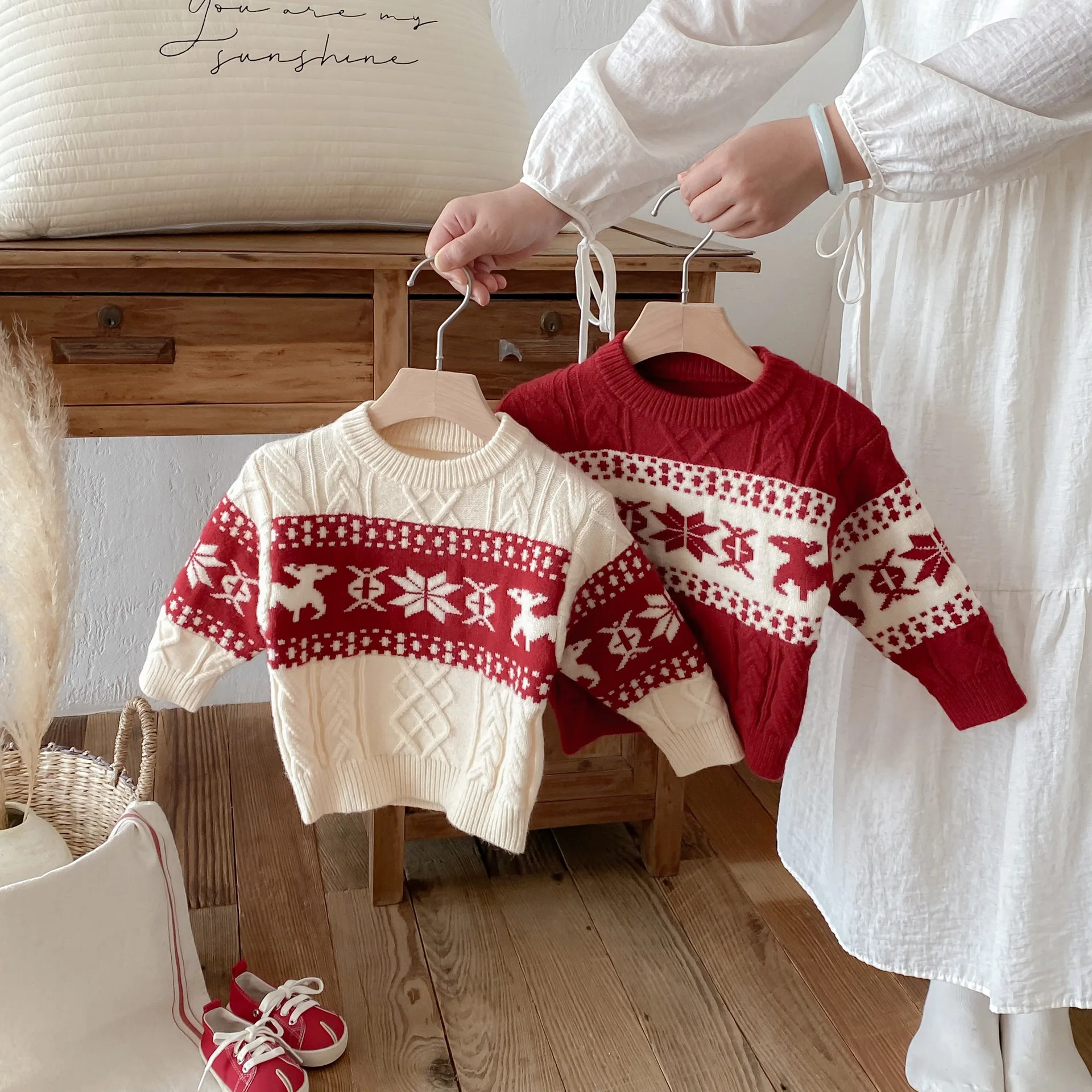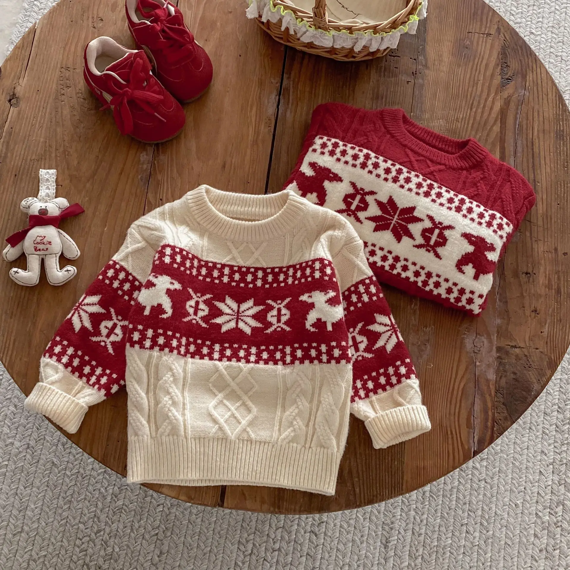 MQTIME - Winter New Children Long Sleeve Casual Sweatshirt Boys Girls Christmas Sweatshirt Baby Cotton Knit Tops Kids Warm Clothes